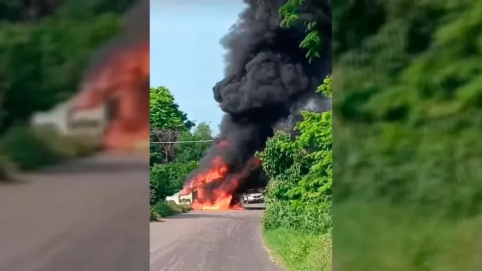 Videos y fotografías difundidas en redes sociales alertaron sobre una camioneta en llamas y múltiples detonaciones por arma de fuego sobre la carretera Apatzingán-Tepalcatepec, a la altura del poblado Santa Ana.