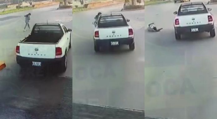 La mujer fue golpeada por la troca, cayendo al suelo después de rodar por el impacto, pero a pesar de ello, el conductor del vehículo jamás disminuyó la velocidad ni se detuvo para ver el estado de la mujer.