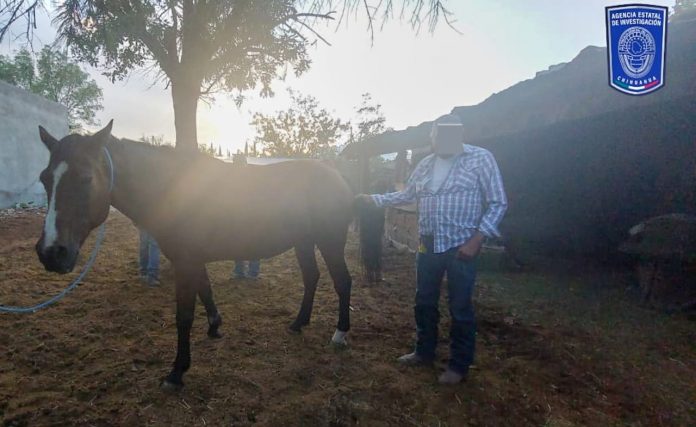 Chihuahua.- En seguimiento a una carpeta de investigación por el delito de robo simple de ganado equino, caballar o mular, la Fiscalía de Distrito Zona Noroeste, logró el aseguramiento de un caballo de la raza cuarto de milla.