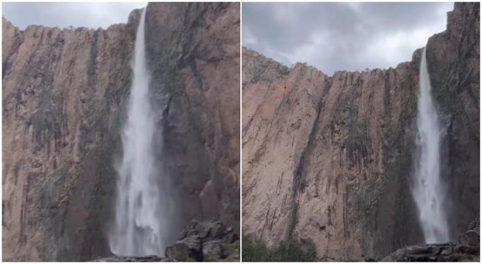 Publicó en X (antes Twitter) video de la cascada de Basaseachi en el municipio de Ocampo, en la Sierra del estado de Chihuahua, grabado desde la parte de abajo.