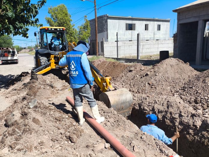 “Los compañeros del área operativa están trabajando en la renovación de la red de agua potable y alcantarillado sanitario en un tramo de esta calle, haciendo el cambio de la tubería vieja de asbesto y concreto”, declaró José Luis Cisneros, director ejecutivo de la JMAS Meoqui.