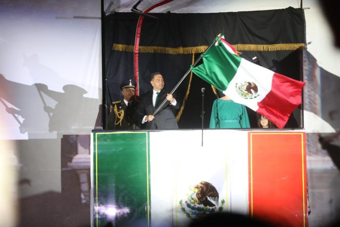 Ciudad Juárez.- Domingo 15 de septiembre del 2024.- Con motivo de la celebración del 214 aniversario de la Independencia de México, el Presidente Municipal, Cruz Pérez Cuéllar, dio el tradicional grito.