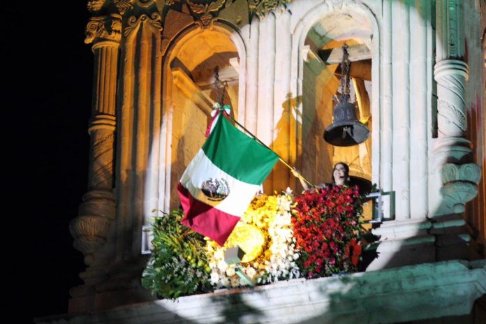 Meoqui.- Al grito de “Viva México, Viva Chihuahua, Viva Meoqui”, la alcaldesa de Meoqui, Miriam Soto dio el tradicional Grito de Independencia desde la torre del Templo de San Pablo ante miles de familas meoquenses, resaltando además la participación de las mujeres en la lucha de Independencia cómo Josefa Ortiz de Domínguez, Leona Vicario, Mariana Rodríguez del Toro y María Ignacia Rodríguez.