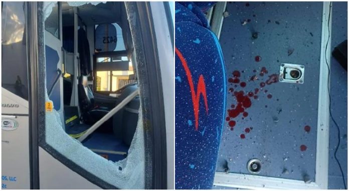 También difundieron imágenes del autobús con vidrios rotos por los balazos en el poblado de Saláices, en el municipio de López.