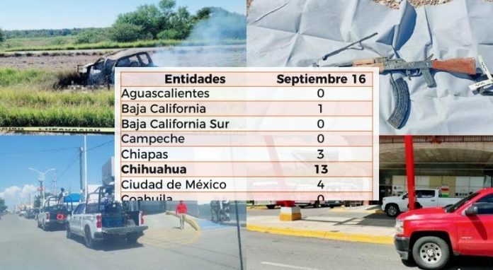 Chihuahua.- El estado de Chihuahua contabilizó ayer, 16 de septiembre, Día del Grito de Independencia, un saldo de trece víctimas de homicidios dolosos, de acuerdo con los reportes oficiales de las autoridades.