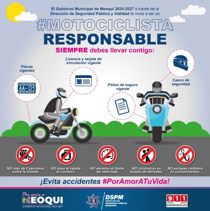 Así mismo, realizó algunas recomendaciones para los conductores tales como utilizar casco de seguridad, evitar manejar a alta velocidad, no modificar el escape, contar con la papelería necesaria esto con el objetivo de prevenir desde cualquier sanción administrativa, hasta la retención del vehículo.