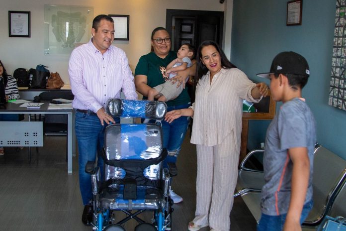 Juan Mateo y su madre, Jessica Ruiz, recibió la silla de manos del presidente municipal. La madre expresó su gratitud, señalando que esta ayuda será de gran utilidad para poder transportar a su hijo de manera más cómoda y segura, ya que antes debía llevarlo en brazos para todas sus actividades.