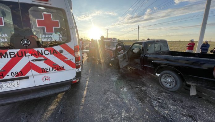 Delicias.- Un fuerte choque frontal entre dos vehículos ocurrió la mañana de este jueves en la Avenida del Charro, frente al Fraccionamiento Paseos del Algodón, dejando dos conductores lesionados y daños significativos en ambas unidades.