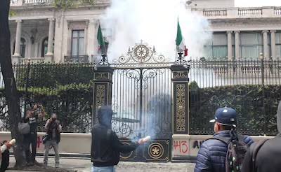 Durante la manifestación por los 10 años de la desaparición de los 43 normalistas de Ayotzinapa, los asistentes lanzaron explosivos de fabricación casera y realizaron pintas en el edificio de la Segob.