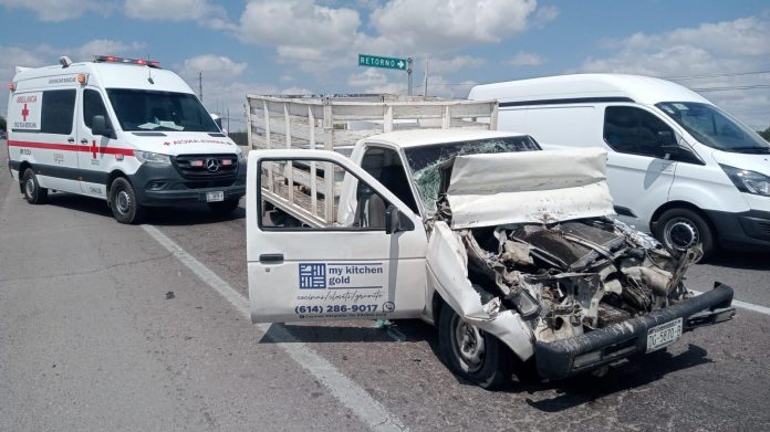 Meoqui.- Un accidente de alcance ocurrió esta mañana en la carretera federal entre Lázaro Cárdenas y Meoqui, dejando dos personas heridas. El incidente involucró una camioneta Nissan blanca que chocó con un camión de transporte de personal de maquiladora.