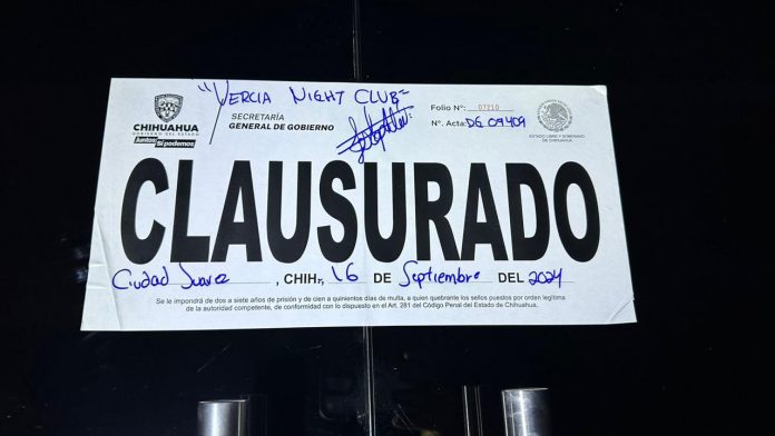• Bar “Vercia Night Club”, por operar fuera de horario (Juárez)