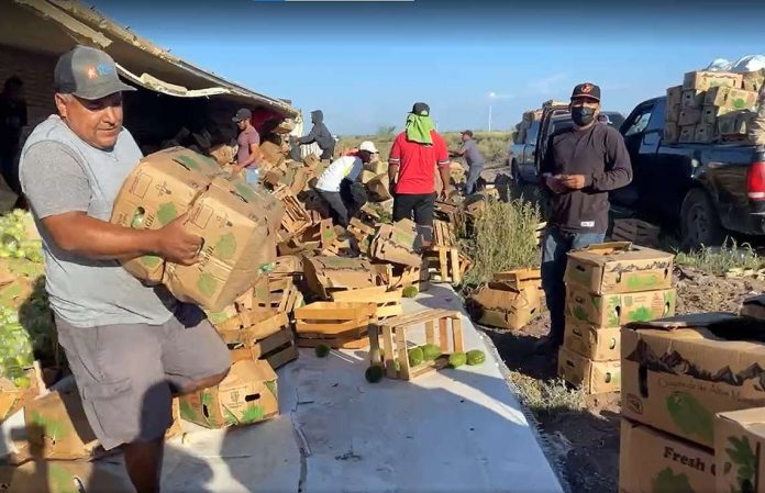 Fueron varias trocas las que se llevaron cargadas de cajas de chayote hasta que finalmente llegaron elementos de la Guardia Nacional y corrieron a los ladrones que prácticamente tuvieron que aventar las cajas que cargaban.
