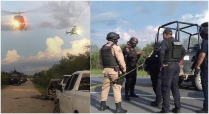 “Se suscitó un enfrentamiento desde los 4 helicópteros que se tienen en la zona dando cobertura. Por tierra, personal se aproximó al lugar y se localizó una zona rural con factibilidad de operación”, la Secretaría de Seguridad Pública.