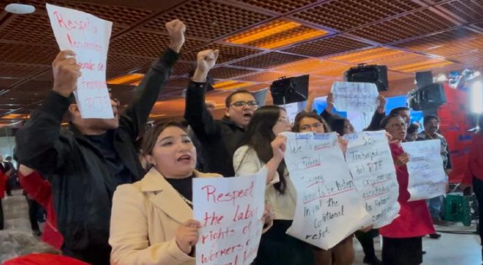 Durante la manifestación, los trabajadores coreaban consignas y portaban pancartas, pidiendo urgentemente un “diálogo con Claudia”. La irrupción provocó momentos de tensión en el recinto legislativo, que ya se encontraba bajo medidas de seguridad para el importante evento de transición presidencial.
