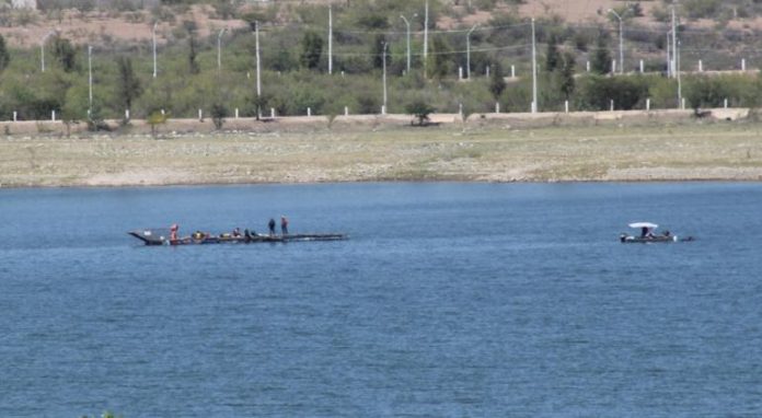 Chihuahua.- Elementos de seguridad, bomberos y paramédicos continúan en las inmediaciones de la Presa Chihuahua en la realización del operativo de rescate del helicóptero accidentado hace un mes en el cuerpo de agua.