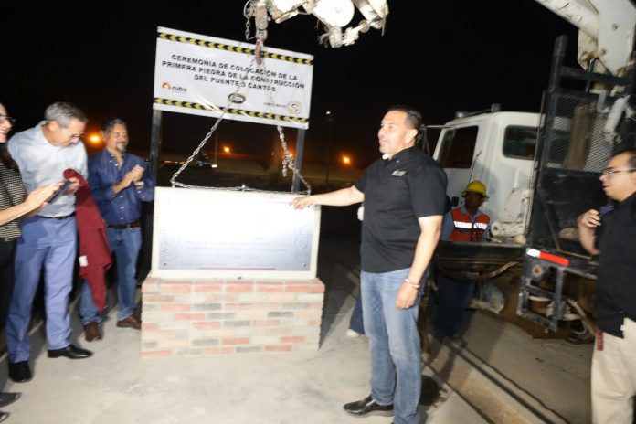 Colocan primera piedra del puente vehicular Tres Cantos