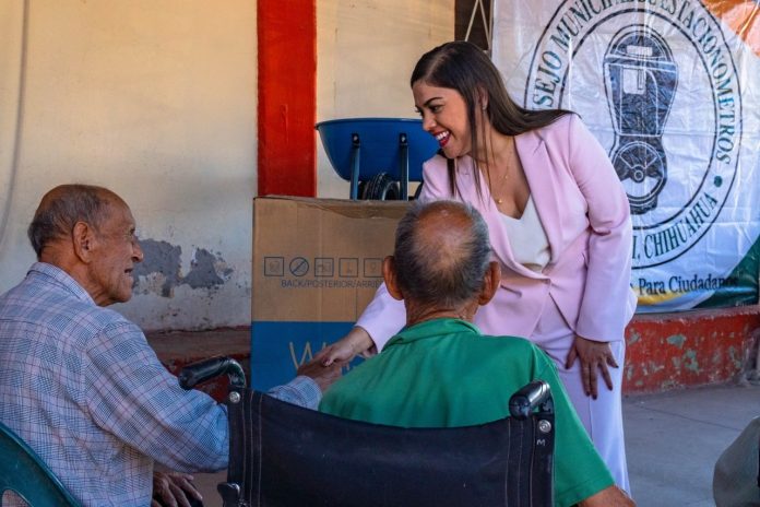 Meoqui.- La Arq. Miriam Soto encabezó la entrega como Presidenta del Consejo de Estacionómetros de Meoqui de dos Mini Split, un comedor, una lavadora, una campana, un congelador y herramientas para jardinería al Asilo de Ancianos El Peregrino con un valor de 55 mil pesos