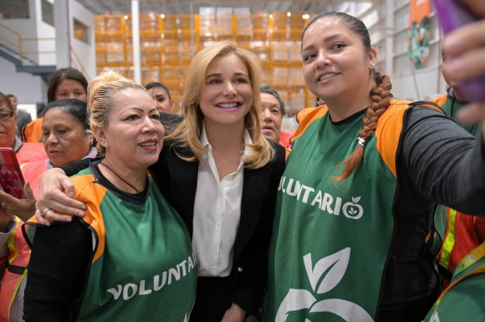 En el lugar, la mandataria estatal se unió a la cadena para cargar los camiones con los paquetes alimenticios, para su posterior distribución a familias en situación de vulnerabilidad. Además, conoció de primera mano la logística que tiene el Banco para la distribución de estos apoyos.