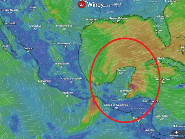 Además, se prevén vientos con rachas de 60 a 80 kilómetros por hora viento con rachas de 60 a 80 kilómetros por hora en Campeche, Quintana Roo y Yucatán, con oleaje de 2 a 4 metros de altura y posibles trombas marinas en costas de Quintana Roo; oleaje de 1 a 3 metros y posibles trombas marinas en Campeche.