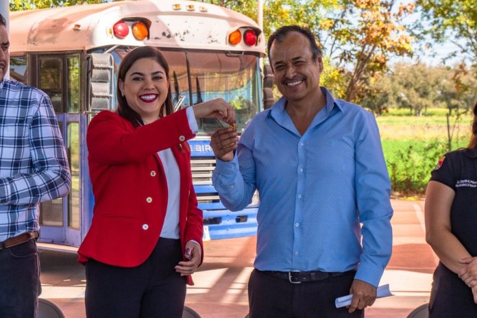 Meoqui.- Un Camión Escolar fue entregado a la Secundaria Ramón Gómez Flores y una Bombera a la comunidad de Guadalupe Victoria en Meoqui, gracias a la suma de esfuerzos de algunos paisanos originarios de la cordillera de Las Puentes a Julimes, así como de los hermanos Vega Aldana quienes realizaron esta donación desde EEUU, siendo también un trabajo en conjunto, donde Gobierno Municipal de Meoqui apoyó en el traslado de las unidades.