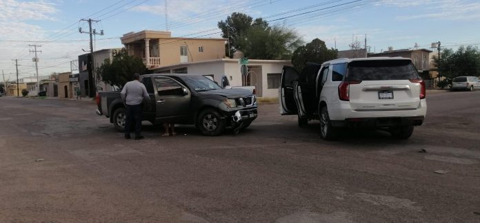 Delicias.- Un accidente vial en el cruce de la avenida 5ta y calle 13, sector poniente, involucró a dos camionetas: una GMC Yukon y una Nissan Frontier.