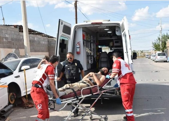 Chihuahua.- Un hombre sufrió graves lesiones en el pecho al caérsele un vehículo encima mientras realizaba reparaciones en las calles Mina Sonopa y Mina del Loro, en el fraccionamiento Villas del Real.