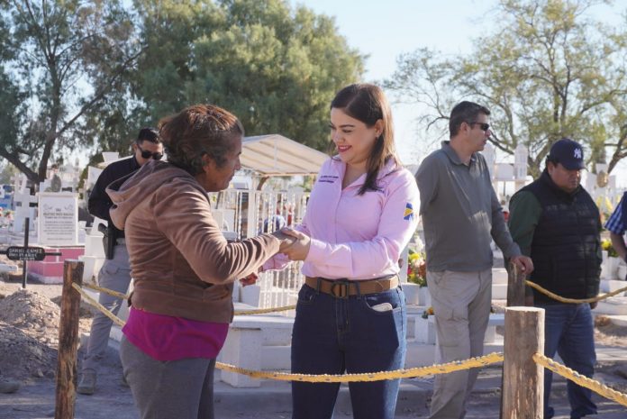 Meoqui.- Desde las 8 de la mañana en punto, Miriam Soto, alcaldesa de Meoqui, inició su recorrido por los panteones del municipio, dando arranque en cabecera municipal, para luego visitar los de las comunidades de Guadalupe Victoria, Lázaro Cárdenas y Estación Consuelo.