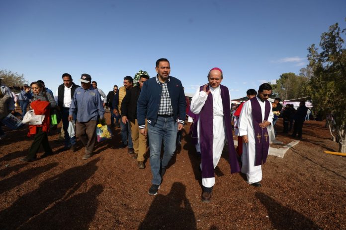 CIUDAD JUÁREZ.- El Presidente Municipal Cruz Pérez Cuéllar, participó en la ceremonia eucarística que se realizó en el Panteón Municipal San Rafael por el Día de Muertos.