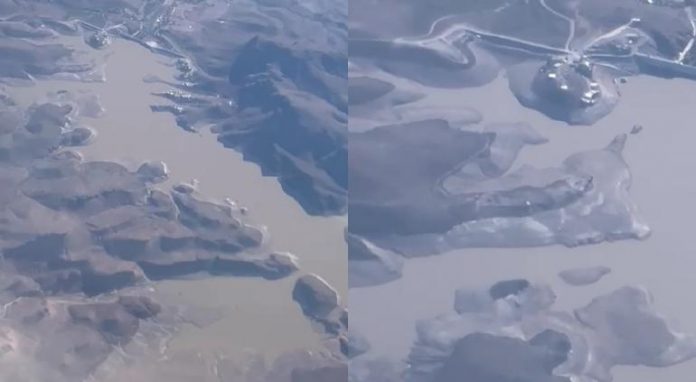 El video fue tomado el 6 de noviembre desde la ventana de un vehículo aéreo y en él se puede ver a detalle la escasez de agua que tiene en este momento la presa.