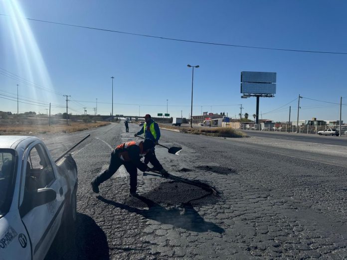 Gobierno de Delicias sigue atendiendo baches en tramos de la carretera federal a pesar de no ser su responsabilidad