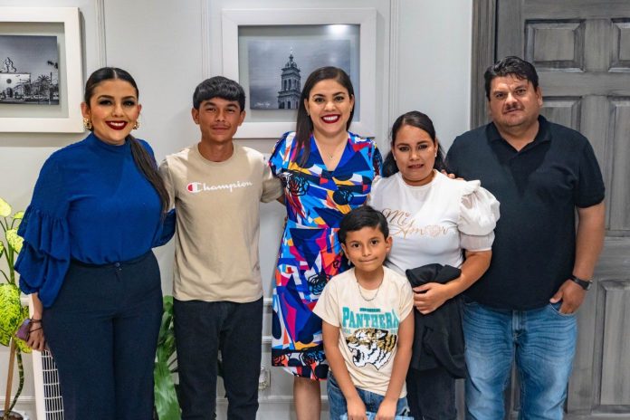 MEOQUI.– La alcaldesa de Meoqui, Miriam Soto recibió al joven originario de Estación Consuelo de 14 años, Alejandro Arenivar, quien fue seleccionado por el Club de Futbol Español Real Madrid para formar parte de su Clínica de Entrenamiento, tras haber sido elegido de entre 150 niños de varios países en la clínica realizada en Dallas, Texas a principios de este año.