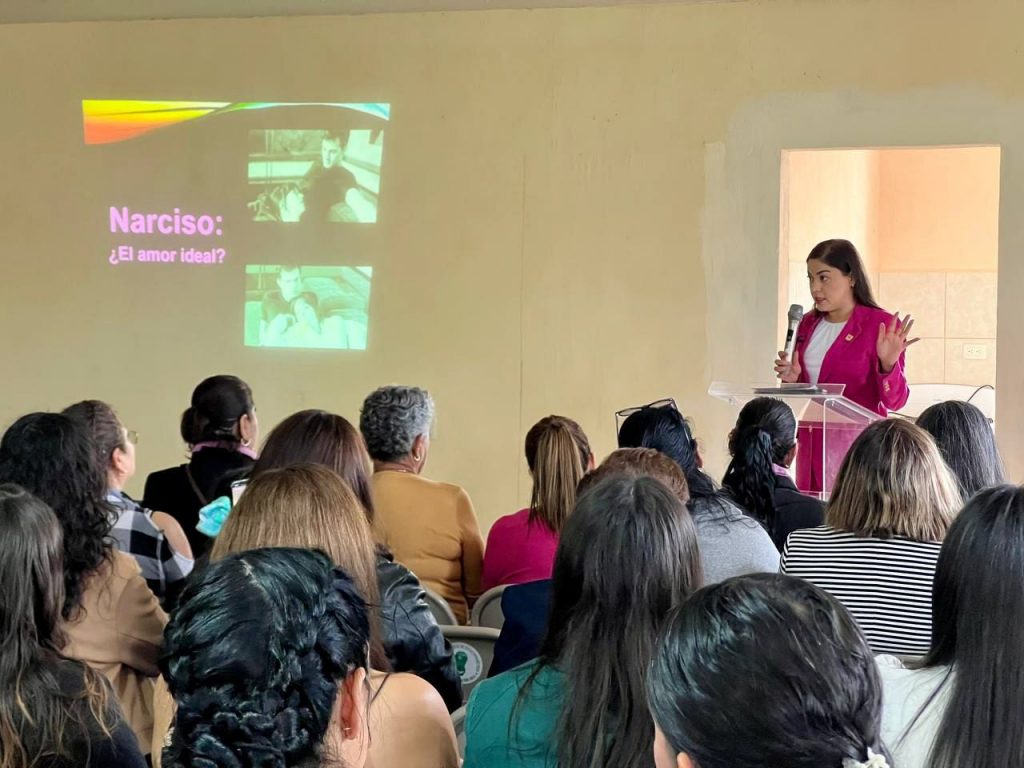 MEOQUI.- En Meoqui, se llevó a cabo la conferencia “Narciso: ¿El Amor Ideal?” Impartida por el Psicoterapeuta Miguel Arnulfo Noé Montes en la cual, se brindaron herramientas para detectar violencia en las relaciones, esto en el marco del Día Internacional para la Eliminación de la Violencia contra las Mujeres, evento en el cual, la alcaldesa Miriam Soto, destacó que en su gobierno, se tiene atención a la mujer, con asesoría psicológica y jurídica, así como acompañamiento con la FEM, donde realmente se meten de lleno para erradicar la violencia contra la mujer.