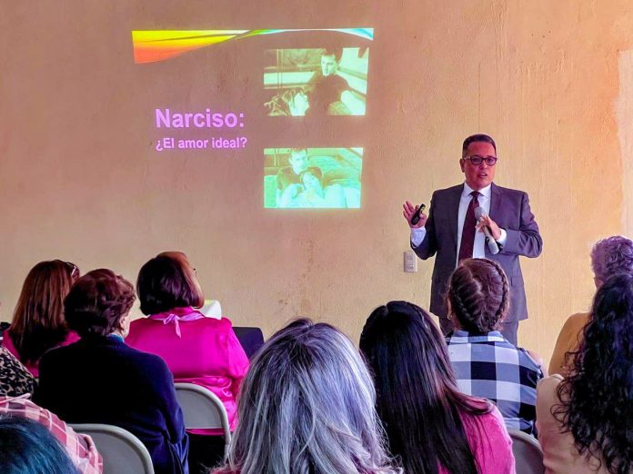 MEOQUI.- En Meoqui, se llevó a cabo la conferencia “Narciso: ¿El Amor Ideal?” Impartida por el Psicoterapeuta Miguel Arnulfo Noé Montes en la cual, se brindaron herramientas para detectar violencia en las relaciones, esto en el marco del Día Internacional para la Eliminación de la Violencia contra las Mujeres, evento en el cual, la alcaldesa Miriam Soto, destacó que en su gobierno, se tiene atención a la mujer, con asesoría psicológica y jurídica, así como acompañamiento con la FEM, donde realmente se meten de lleno para erradicar la violencia contra la mujer.