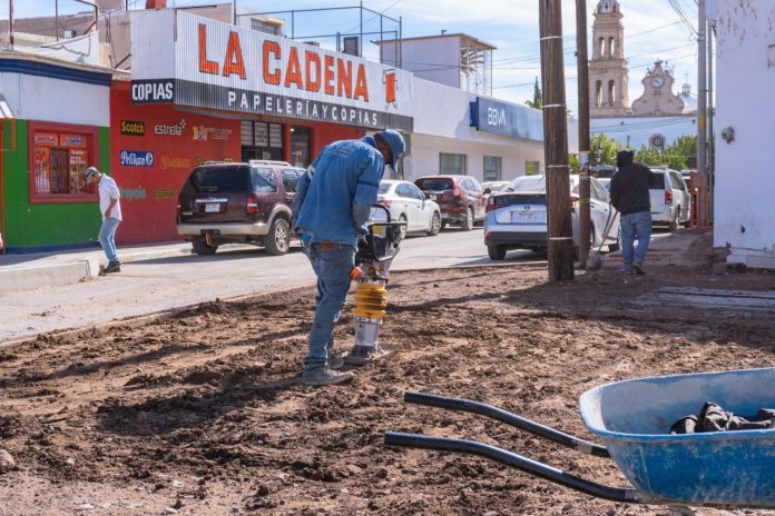 MEOQUI.– El Gobierno de Meoqui avanza en el Proyecto de Rehabilitación Integral del Paseo Zaragoza en Meoqui donde se realizan trabajos en la sección de la calle Niños Héroes – Miguel Hidalgo para concluir lo realizado por la JMAS y posteriormente iniciar con la ubicación del alumbrado público, pintado de calles, así como la señalización de las mismas.