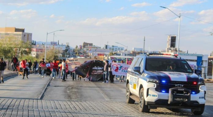 CHIHUAHUA.– Salieron de la Glorieta de Pancho Villa y tomaron la avenida Universidad para llegar al Centro y permanecieron un momento en el cruce de la calle Juárez y Carranza.