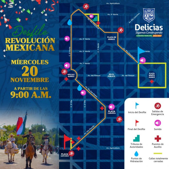 Delicias.- El Gobierno Municipal de Delicias invita a las familias a disfrutar del tradicional desfile del Día de la Revolución Mexicana, que se llevará a cabo el próximo miércoles 20 de noviembre. Este magno evento contará con la participación de 88 contingentes, encabezados por las Fuerzas Armadas, ofreciendo un espectáculo cívico y cultural que celebrará esta importante fecha histórica.