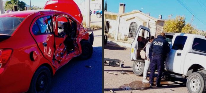 Meoqui.- Un accidente de tráfico ocurrió esta mañana en la comunidad de Meoqui, resultando en cuatro personas lesionadas. El choque entre un auto Sedan rojo y una pick up Ford blanca ocurrió alrededor de las 9:00 a.m. en las calles de la comunidad.