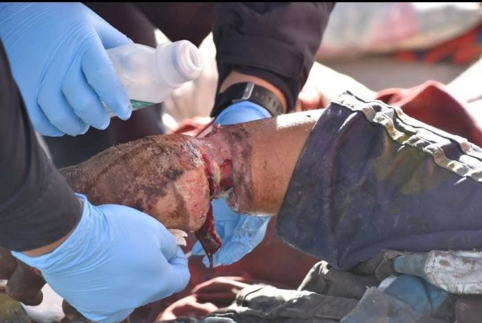 Los hechos ocurrieron esta mañana en las calles del Alamillo y Nacionalistas, en la colonia Tarahumara, cuando los paramédicos municipales acudieron a auxiliar a la mujer, quien presentaba una grave herida en su brazo derecho.