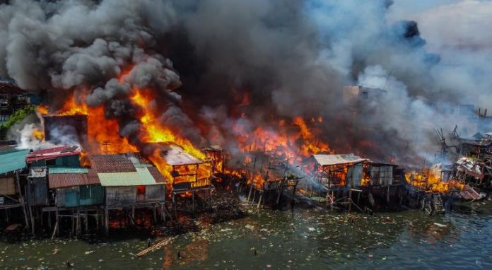 El enorme fuego causó que las mil viviendas sencillas hechas de madera y láminas que se encontraban en el rompeolas del Puerto Norte de Manila, se quemaran en su totalidad dejando a miles sin hogar.