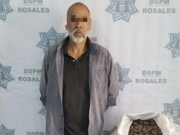Rosales.- Elementos de la Dirección de Seguridad Pública del Municipio de Rosales detuvieron a Omar Manuel Y. R., de 49 años de edad, por robar aproximadamente 10 kilogramos de nuez en cáscara en una nogalera.