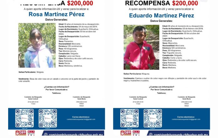 Tras dos meses de búsqueda ininterrumpida, la Comisión Local de Búsqueda lanza el pago de recompensa para localizar a los hermanitos Rosa y Eduardo Martínez Pérez, desaparecidos el pasado mes de octubre en el municipio de Guachochi.