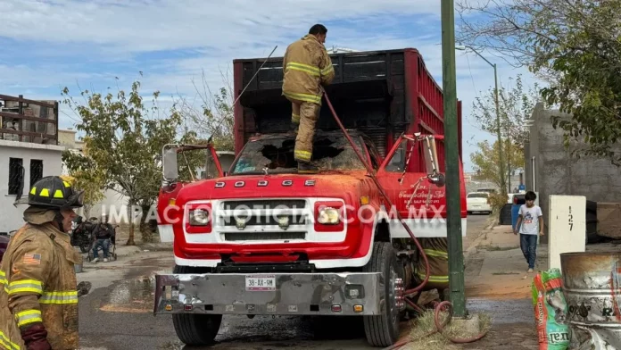 El incendio se dio por un corto circuito en la parte de la cabina y que consumió los asientos, tablero, además de irse hacia la caja.