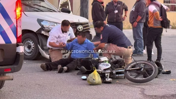 Camargo.- En la calle Juan de la Barrera y Vicente Suárez ha ocurrido un choque entre una camioneta de un súper y una motocicleta. La camioneta, una Toyota de color blanco, iba en circulación por la Vicente Suárez, se Sur a Norte y en sentido libre. Mientras, por la calle Juan de la Barrera circulaba un motociclista, mismo que omitió el señalamiento de alto y provocó así la colisión en la intersección de ambas calles.