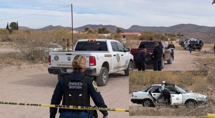 Chihuahua.- Esta mañana, un trágico hallazgo se registró cerca del kilómetro 30 de la carretera a Juárez, en el Ejido Ocampo, donde fueron encontradas tres personas ejecutadas a bordo de un taxi Tsuru. Autoridades desplegaron un fuerte operativo en la escena del crimen