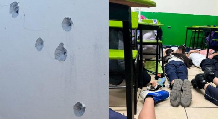 México.- En Culiacán, Sinaloa, sujetos desconocidos rafaguearon un negocio ubicado frente a una escuela primaria, lo que hizo que los niños y maestros se pusieran pecho tierra.