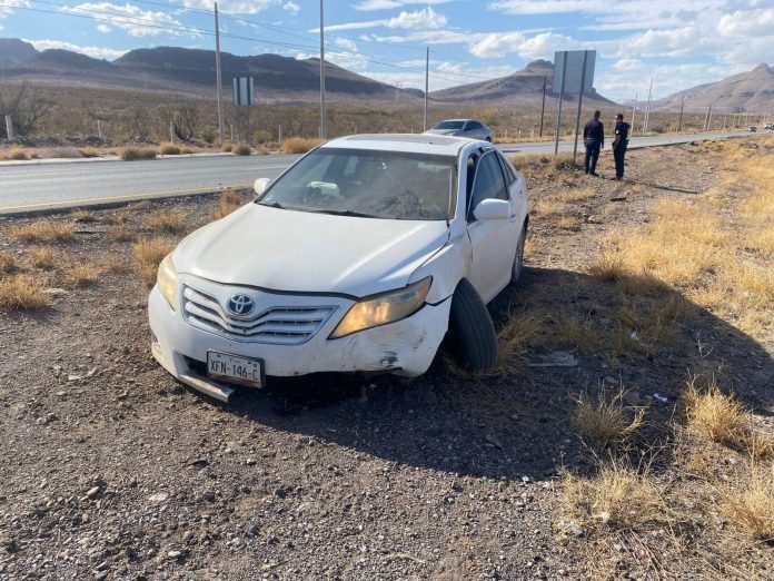 Chihuahua.- Una salida de camino ocurrió esta tarde en la carretera Chihuahua-Delicias, a la altura del kilómetro 176, sentido norte-sur. Afortunadamente, las tres personas que viajaban en el vehículo resultaron ilesas, solo con un susto.