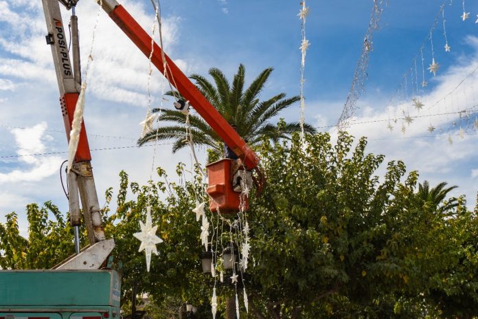 Ultiman detalles de decoración en Meoqui para encendido de árbol de Navidad