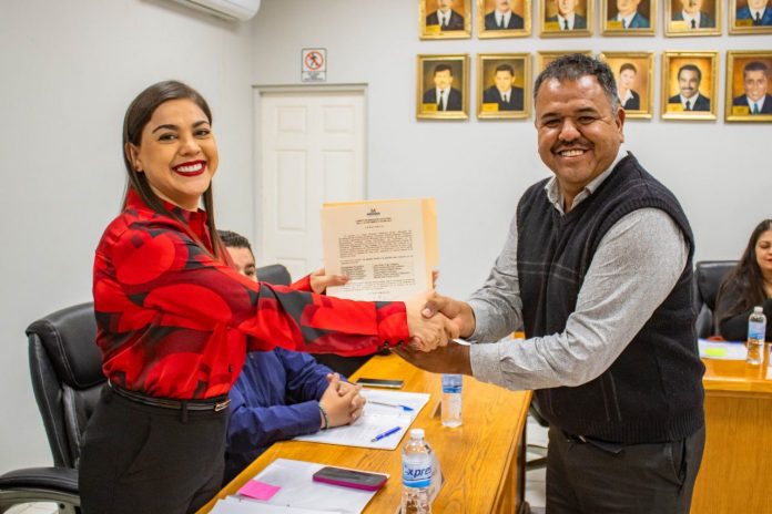 Meoqui.- Durante la sesión ordinaria del H. Ayuntamiento, la alcaldesa Miriam Soto hizo entrega de las constancias de mayoría a los nuevos presidentes seccionales de Guadalupe Victoria, Héctor Gallardo Carrera, y de Lázaro Cárdenas, Juan Pedro Trejo, quienes asumieron el compromiso de trabajar de la mano con el municipio para atender las necesidades de sus comunidades.