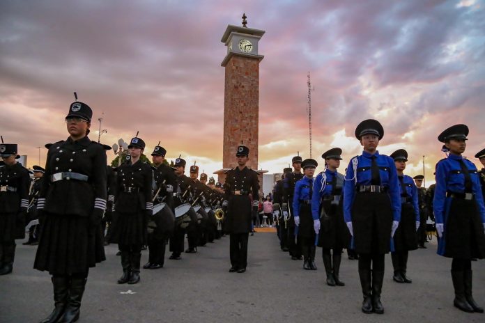 Delicias.- El presidente municipal de Delicias, Jesús Valenciano García, encabezó la ceremonia inaugural del Concurso Estatal de Bandas de Guerra y Escoltas de Bandera de la Dirección General de Educación Tecnológica Industrial y de Servicios (DGETI). El evento tuvo como sede el CETis 87, reuniendo a 375 estudiantes de 17 planteles educativos del estado de Chihuahua.