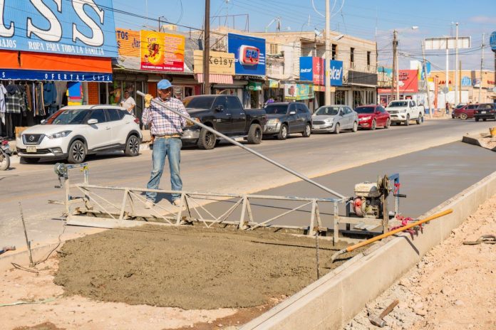 Meoqui.- Continúan los trabajos en las distintas secciones del Paseo Zaragoza; sin embargo, la obra en los cruces será postergada para el año entrante, esto con el objetivo de evitar los cierres de calles por temporada decembrina.